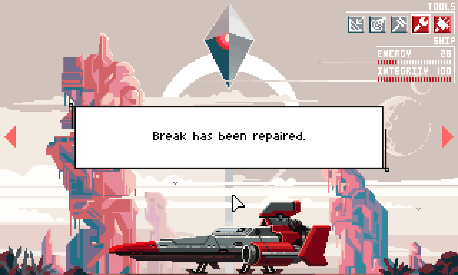 select a tool → click hotspots → receive clear UI feedback → progress the ship’s state.